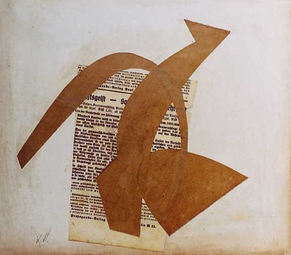 il s'agit d'un collage abstrait beige réalisé sur une page de journal.