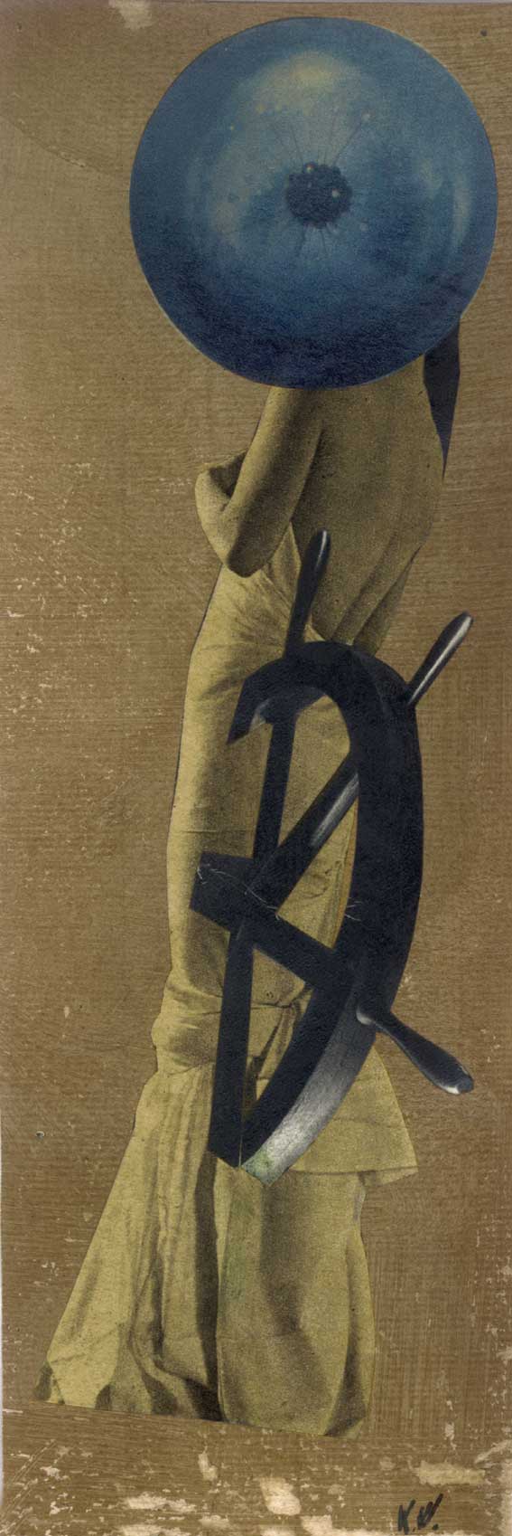 Description | une femme dont le visage est remplacé par un globe. un gouvernail est placé sur son corps. |