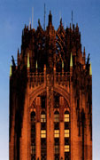 in the background, there are buildings of new york. the one on the left side is the general electric building and the one on the right side is the hotel new yorker (1930). right at the top, there is a naked dancer. at the bottom, the figure 64