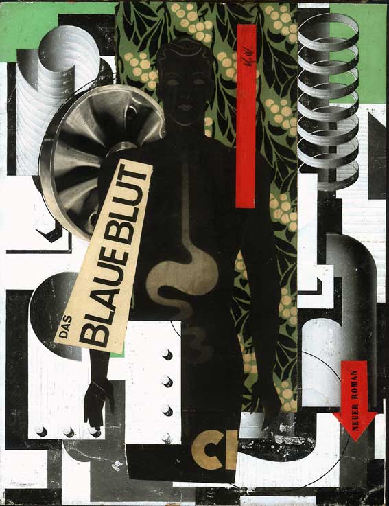 une image représentant un estomac humain. en bas, à droite se trouve une flèche portant l'inscription "neuer roman"= nouveau roman le support est la couverture d'un livre. avoir le sang bleu signifie être noble. cette expression remonte au moyen age et fait allusion au fait de ne pas avoir le sang juif ou maure. la phrase sur le dos d'image était utiliser par hitler dans son parole au sa le 30 janvier 1936.
